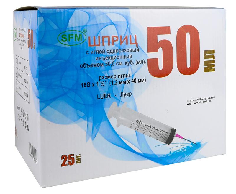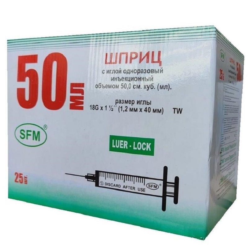 Шприц 50мл. (3-х) SFM, однораз. стер. с иглой 1,20 x 40 - 18G