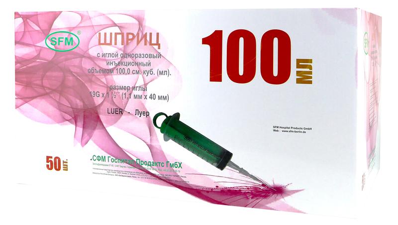 Шприц 100мл. (3-х) SFM, однораз. стер. с иглой 1.1 х 40 - 19G